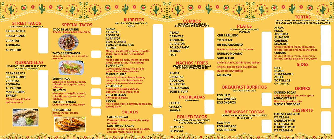 At Gabys Tacos, we are committed to delivering the highest quality of service to our clients. From the napkin on your lap, to the utensils on the table, to the cocktail in your glass, you can be sure that everything will be perfectly in place. Our ingredients are fresh and healthy and showcased in truly awe-inspiring ways. Anyone can make you a meal, but we will take you away on a fine dining journey!